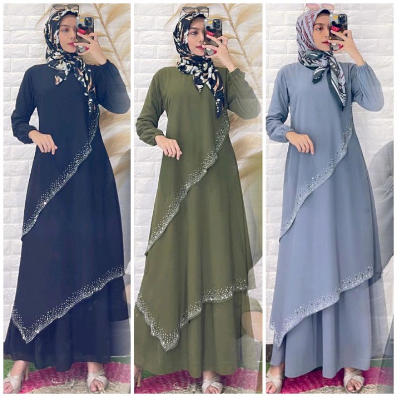 Dress baju gamis wanita muslim longdress cantik mode kekinian terbaru.